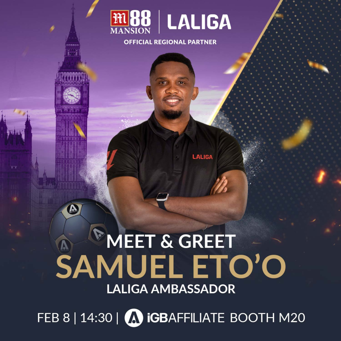 Eto’o, who serves as La Liga Global and M88 Mansion ambassador, is scheduled to attend the London Affiliate Conference at the M88 booth inside IGB London Ice on February 7 and 8.
